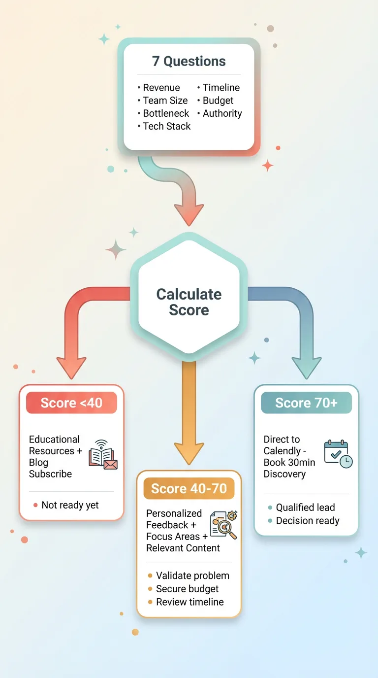 Score above 70: You get routed directly to my Calendly to book a free 30-minute discovery call. No friction. You're qualified. Let's talk.
