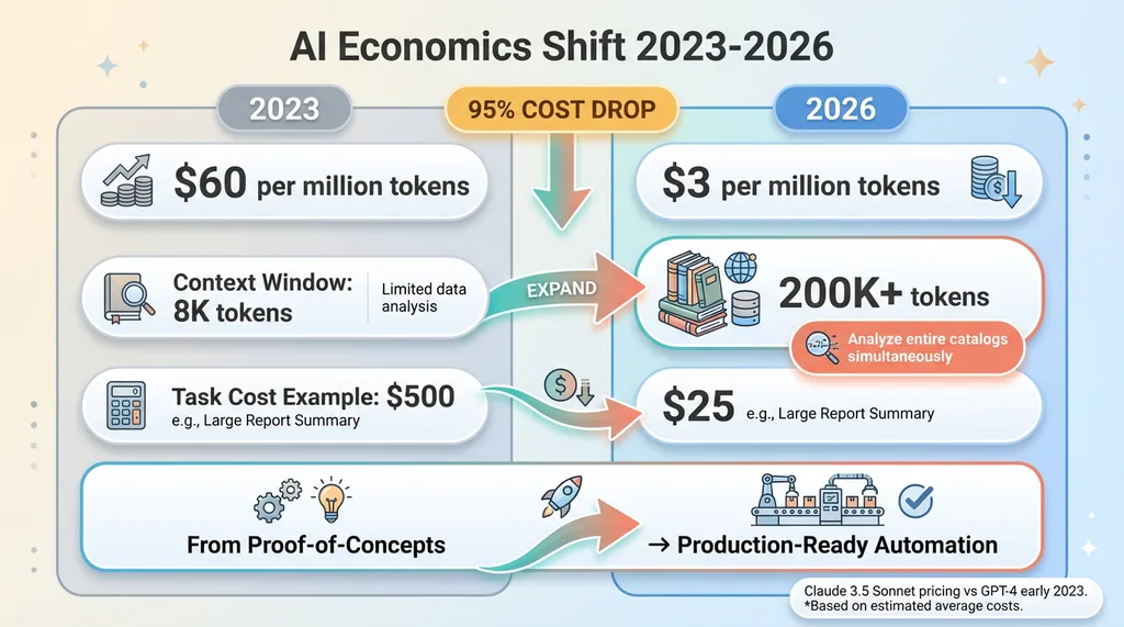 That shift made automation viable for us. Tasks that cost $500 to run through AI in 2023 now cost $25. We went from testing proof-of-concepts carefully to running AI on everything repetitive.