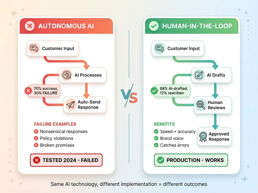 We pulled it back to human-in-the-loop. Now AI drafts responses, humans review and send. That works. Full autonomy doesn't.