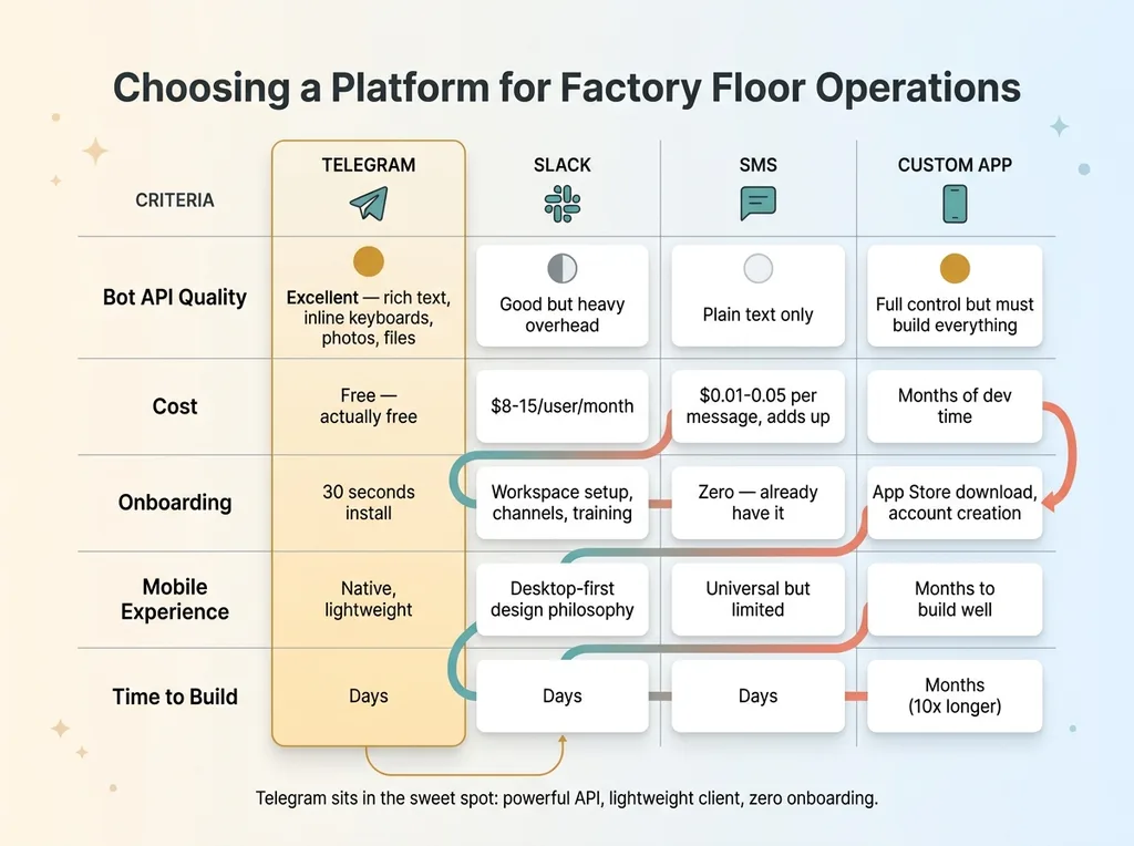 Why Telegram (and Not Slack, SMS, or a Custom App)