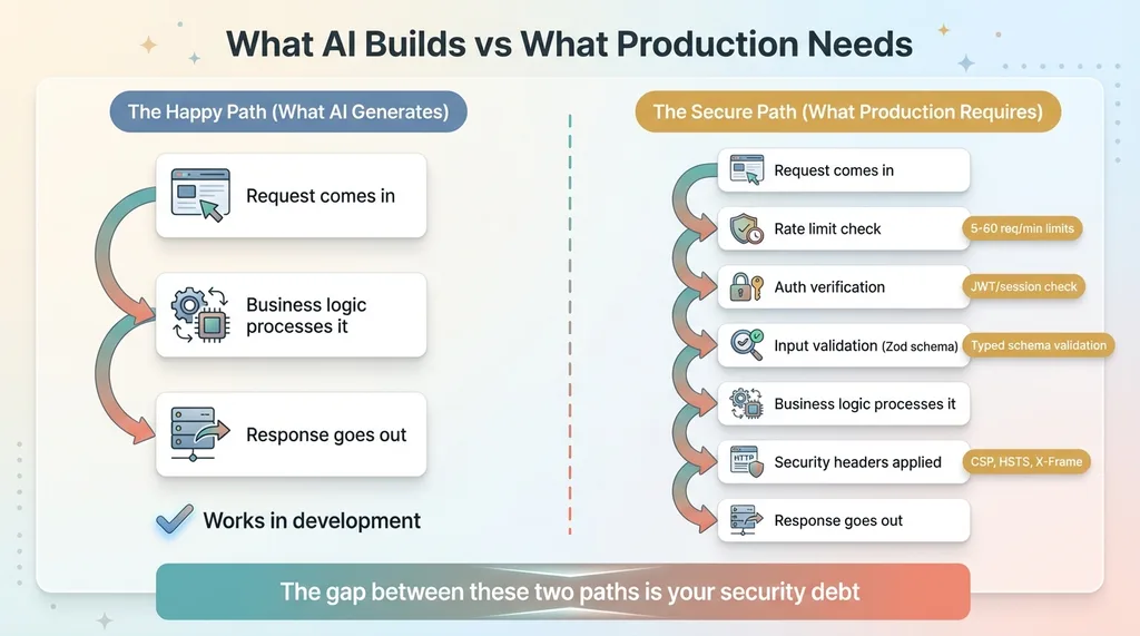 When you prompt an AI to build an API route, it gives you a working endpoint. Request comes in, response goes out. It works. Ship it.