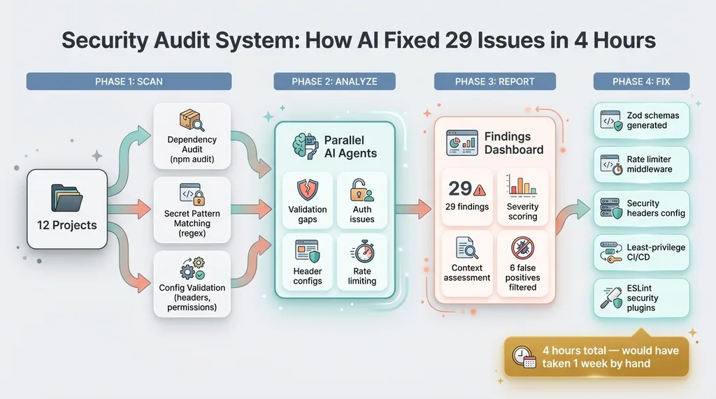 Here's the ironic part. The same AI tools that skipped these security basics also fixed all 29 issues — in a single afternoon.